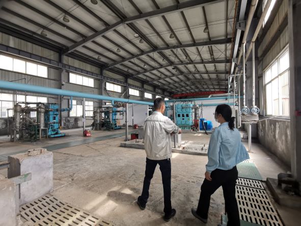 無錫市圣馬氣體有限公司舟山分公司專為金海智造股份有限公司配套供應氧氣,地址位于舟山市岱山縣長涂鎮仙草潭金海智造股份有限公司內,一期工程于20084月建成并投入使用,二期工程于201110月建成投產,但2013年又拆除了原二期工程所安裝的空分設備(保留二期工程中5100 m3中壓氧氣儲罐),目前有11500Nm3/h制氧能力的空分裝置,年制氧能力達到1178N m3,大部分氧氣通過管道輸送至船廠用氣崗位,少量通過匯流排充裝至鋼瓶,供船廠零星用氣崗位使用(未安裝氧氣管道崗位),公司內具備年充裝氧氣7.2萬瓶的能力,公司現有職工8人。公司于201889日取得浙江省安全生產監督管理局頒發的安全生產許可證證書編號為(ZJWH安許證字〔2018-L-0304,許可范圍:年產工業氧氣1178Nm3、氧氣7.2萬瓶。20171221日取得浙江省質量技術監督管理局頒發的氣瓶充裝許可證,編號為TS42337042021,有效期至2021112日。202068日取得危險化學品安全標椎達標證書,證書編號: ABQ IIIWH202000032,有效期至20236月。