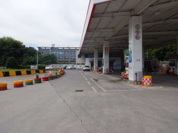 加油站安裝有汽油卸油和加油油氣回收系統。加油區設置加油罩棚,罩棚頂部為輕鋼結構。罩棚下設置4臺雙油品四槍、1臺單油品雙槍和1臺三油品六槍潛油泵式加油機(汽油加油槍帶油氣回收);埋地油罐區設有3只50m3埋地臥式內襯玻璃纖維增強塑料鋼制油罐(車道罐,其中50m3埋地臥式汽油罐2只(分別為92#汽油罐和95#汽油罐),50m3埋地臥式柴油罐1只,油罐總容積折算為125m3(柴油罐折半計入),根據《汽車加油加氣站設計與施工規范》GB50156-2012(2014年版)的相關規定,該加油站為二級加油站。