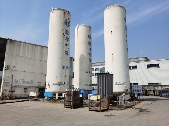臺州市黃巖順豐氣體有限公司位于臺州市黃巖江口街道道頭村,公司成立于2009年12月,是一家專業從事氧氣、氮氣空分生產及氬氣、二氧化碳充裝的有限責任公司,公司法定代表人為黃道國。公司擁有KDON-500/1000空分設備1套和YPON-200/1100液化設備及氣瓶充裝設備,生產能力為年產氧氣66萬瓶、氮氣13萬瓶、液氧2260噸、液氮10900噸和年充裝二氧化碳9.5萬瓶、氬氣6萬瓶。公司還設有100m3液氮貯罐2只(其中1只停用),100m3液氧貯罐1只,50m3液體二氧化碳貯罐2只,50m3液氬貯罐1只,用于儲存公司低溫液體物料。 企業于2018年委托浙江泰達安全技術有限公司出具了《臺州市黃巖順豐氣體有限公司年產氧氣66萬瓶、氮氣13萬瓶、液氧2260噸、液氮10900噸和年充裝二氧化碳9.5萬瓶、氬氣6萬瓶項目安全現狀報告》(編號:XZPJ[2018]0028),并于2020年5月18日進行了延期,重新取得了安全生產許可證(編號:(ZJ)WH安許證字[2020]-J-2102),許可范圍:年產:氧氣66萬瓶、氮氣13萬瓶、液氧2260噸、液氮10900噸,年充裝:二氧化碳9.5萬瓶、氬氣6萬瓶。有效期至: 2023年5月17日。
