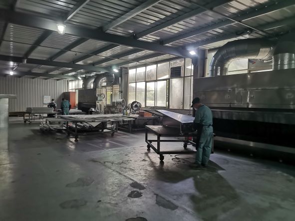 根據企業提供的資料及現場踏勘情況,該企業主要生產工藝為鋁板帶沖孔、折彎、氬弧焊接、矯正、打磨、脫脂、水洗、烘干、噴涂、固化、下件、包裝等,生產過程中涉及使用[壓縮的或液態的]、天然氣、油漆、稀釋劑、DY-800鋁酸脫、氫氧化鈉等危險化學品,食堂涉及使用液化石油氣作為燃料。其中噴涂作業涉及使用的油漆、稀釋劑等儲存在危化品倉庫庫內,焊接涉及使用的氬[壓縮的或液態的]以低溫儲罐儲存,食堂涉及使用的液化石油氣存放在食堂邊的鋼瓶間內。